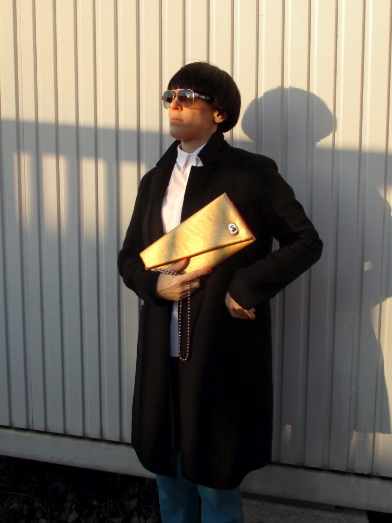 Silberfarbenes Kunstleder mit silberfarbenem Drehverschluss und Handgelenkskette aus silberfarbenem Nickel. Innenfutter: Baumwolle in Hot-Pink. Innen ist eine kleine Reißverschlusstasche.